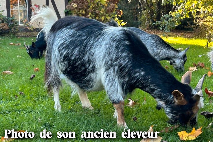 Voici une jolie naissance qui n'était pas attendue... JULIA était tellement rondouillette que sa gestation est quasiment passée inaperçue, seules les mamelles nous ont alerté. Malheureusement, la naissance qui a eu lieu pendant la nuit n'a pas permis à AL de naître correctement, JULIA ayant choisi un lieu très restreint pour mettre bas, contre le mur et je pense qu'elle n'a pas pu se retourner assez rapidement pour s'occuper de AL afin de le sortir de sa poche. Heureusement qu'APALADIN a pu naître sans problème. Je suis très heureuse que le beau UPSILON ait pu transmettre sa magnifique robe mantelé postérieur chocolat. UPISLON étant pie et issu de JULIA, il a peut-être hérité de sa génétique herminée, pour le moment, je n'arrive pas à trop voir car c'est un petit bout de chou qui bouge sans cesse... cela se voit presque mieux sur les photos que dans la réalité. C'est un chevreau issu de 2 nouveaux reproducteurs arrivés cette année à l'élevage, il n'a donc aucun lien de parenté avec nos autres lignées et c'est pour cela que je vais le réserver pour notre élevage et voir comment il va évoluer !