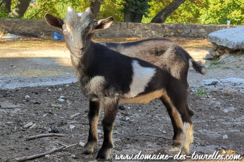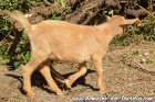 TIKIA a donné naissance au retour du pastoralisme d'un très joli chevreau à la génétique peu courante et identique à celle de sa maman. D'une belle teinte orangée très chaleureuse, ANTOINE attire l'oeil. Ses marbrures plus nombreuses et essentiellement regroupées sur la droite de son corps sont de teintes très douces et vont peu à peu s'éclaircir pour devenir d'un ton beige clair, ce qui va le faire apparaître très discrètement. ANTOINE a également hérité le gêne motte* de sa maman. C'est un chevreau très doux et gentil, calme et de caractère posé. Eric l'a complété au biberon car sa maman était limitée dans sa production de lait en cette saison estivale pas facile.