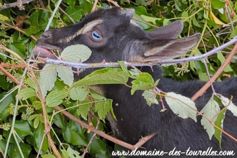 ANGELIQUE est née pendant le pastoralisme mais cette fois-ci en chèvrerie (NINA-ROSE inquiète, n'a pas voulu sortir, j'ai donc immédiatement compris que la naissance était proche, ce qui m'a permis de la surveiller, même s'il m'a fallu m'absenter le temps d'accompagner Eric avec le troupeau jusqu'au premier champ). Heureusement, tout s'est bien passé et ANGELIQUE a vu le jour sous les léchouilles bienveillantes de sa maman. C'est une chevrette pour le moment plutôt distante avec nous et relativement solitaire. Elle ne se mélange pas trop avec les autres chevreaux et reste à dormir tranquillement dans son coin ou bien elle explore son environnement en allant sentir les odeurs ou grignoter quelques tiges par ci par là, mais elle ne mange quasiment pas pour le moment et attend uniquement les tétées auprès de sa mère.