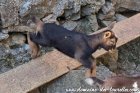 AGATHA est quant à elle de couleur plus classique avec du pie sauvage et probablement marques feu sundgau* qui ne sont pas vraiment discernables lorsqu'elles sont associées à la robe sauvage. C'est une chevrette à qui Eric propose le biberon mais elle prend quelques gorgées irrégulièrement. C'est une chevrette de petit gabarit et très gentille.