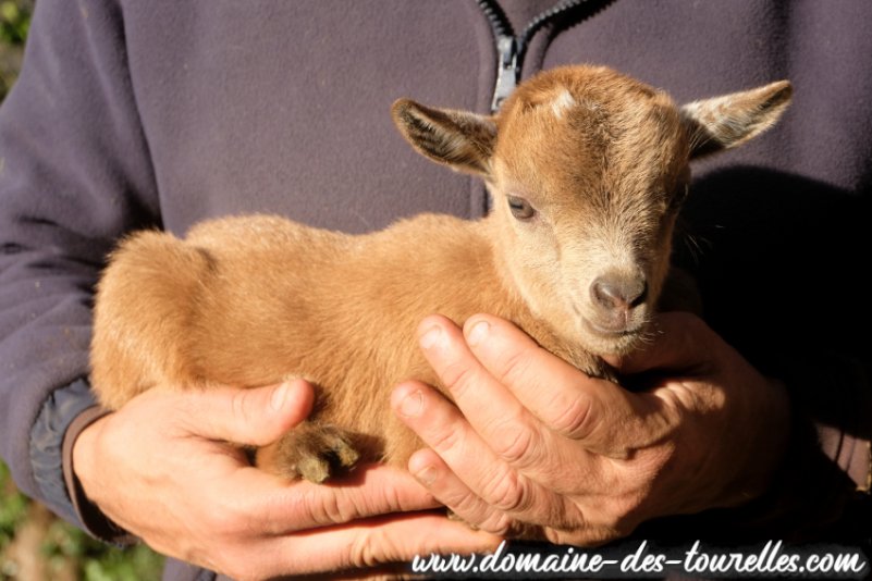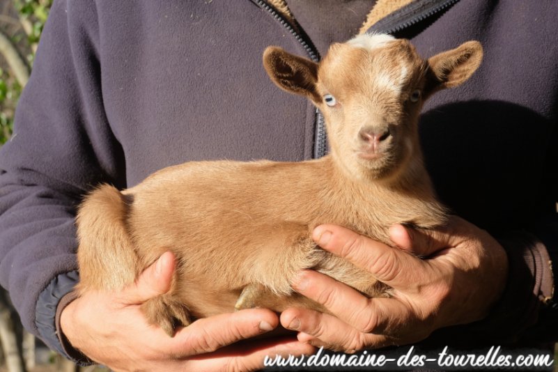 SIA faisait téter son chevreau tout sec lorsque nous l'avons découvert dans la chèvrerie ! Heureusement, la mise bas s'était bien passée malgré la petite taille de la maman. BALOU est lui-même un chevreau de petit gabarit, un futur toy ou extra-nain. Il a hérité de la petite bouille à croquer de son papa et d'une jolie conformation compacte qui le rend particulièrement attractif ! Il a hérité de la robe de base rouge nuancée de son papa. Et son caractère joueur et proche de sa maman le rendent des plus mignon !