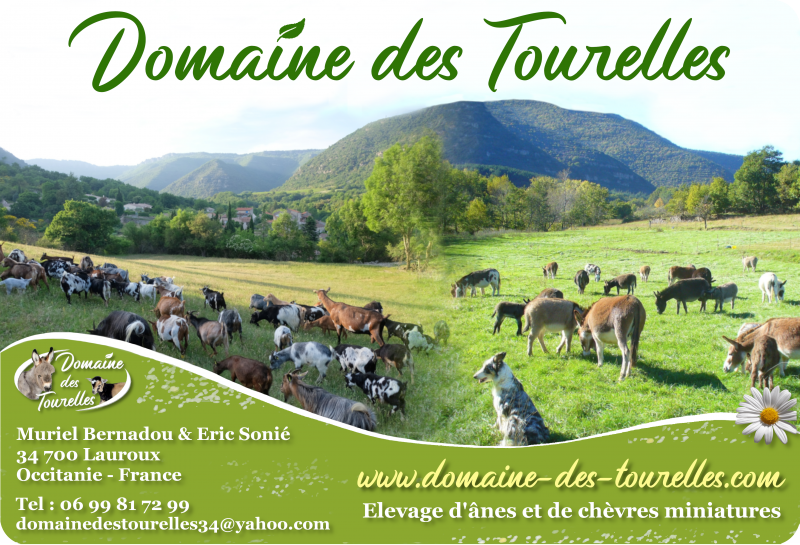 Situés dans le nord de l’Hérault (34 - Occitanie - France), le Domaine des Tourelles est un lieu de vie sur lequel nous élevons avec amour et passion des ânes et des chèvres miniatures. Nous sommes spécialisés dans le miniature haut de gamme, pour l'élevage ou la compagnie.