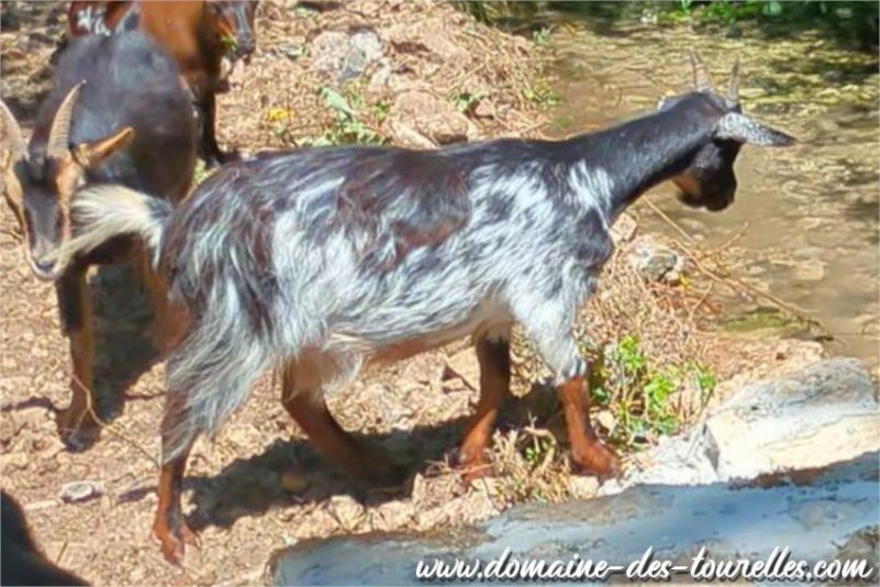 ANOUKIS (dont les photos sont tardives puisque prises quasi au moment de son sevrage) est un beau loulou qui arbore de superbes yeux bleus lui provenant de sa maman. C'est un chevreau que nous avons dû prendre au biberon car sa maman n'avait pas beaucoup de lait, elle était fatiguée en cette saison bien chaude et sèche ainsi que sportive pour nos chèvres afin de parcourir les plus longues distances pour retrouver de la verdure. Ainsi ANOUKIS est un chevreau d'amblée familier et très gourmand... je crois que cela se voit sur les photos avec ses jolies rondeurs.
