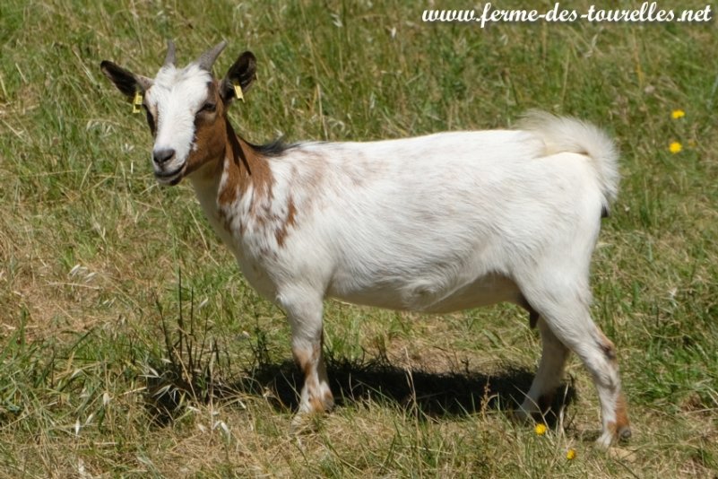 GYPSIE est une très jolie chèvre de conformation plutôt fine avec une belle largeur de poitrine, de bons aplombs et une jolie tête. Vive et très gourmande, c'est bien souvent une petite boule sur patte ! De plus, elle a la jolie particularité d'avoir un coeur dessiné sur le dos et une personnalité facile et naturellement familière ! C'est par ailleurs une très bonne reproductrice avec une descendance qui fait partie des reproductrices phare de notre élevage et dont les petits-enfants ont été sélectionné par divers élevages au travers de la France. GYPSIE est partie chez Jérôme (Manche - 50)