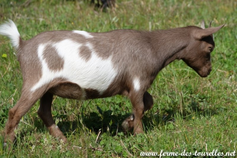 TIAMO est un adorable chevreau très joliment conformé, particulièrement harmonieux et avec une jolie robe de teinte chatoyante, au marquage bien réparti. TIAMO est un bout de chou élégant, avec un petit bouille à croquer ! J'aurai espéré qu'il ait hérité des poils longs en intégral de sa maman pour devenir un de nos reproducteurs à poils longs, de lignée différente de nos boucs actuels, mais ce n'est malheureusement pas le cas, je le mets donc avec regrêt en vente. D'autant plus que c'est pour le moment un tout petit gabarit, possiblement un futur toy (il faudra néanmoins attendre l'âge de 3, voire 4 ans afin que la croissance soit achevée pour confirmer son appartenance à une catégorie de taille). TIAMO est réservé par Ambre