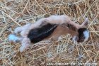 Voici une jolie naissance qui n'était pas attendue... JULIA était tellement rondouillette que sa gestation est quasiment passée inaperçue, seules les mamelles nous ont alerté. Malheureusement, la naissance qui a eu lieu pendant la nuit n'a pas permis à AL de naître correctement, JULIA ayant choisi un lieu très restreint pour mettre bas, contre le mur et je pense qu'elle n'a pas pu se retourner assez rapidement pour s'occuper de AL afin de le sortir de sa poche. Heureusement qu'APALADIN a pu naître sans problème. Je suis très heureuse que le beau UPSILON ait pu transmettre sa magnifique robe mantelé postérieur chocolat. UPISLON étant pie et issu de JULIA, il a peut-être hérité de sa génétique herminée, pour le moment, je n'arrive pas à trop voir car c'est un petit bout de chou qui bouge sans cesse... cela se voit presque mieux sur les photos que dans la réalité. C'est un chevreau issu de 2 nouveaux reproducteurs arrivés cette année à l'élevage, il n'a donc aucun lien de parenté avec nos autres lignées et c'est pour cela que je vais le réserver pour notre élevage et voir comment il va évoluer !