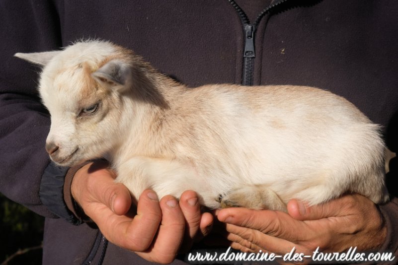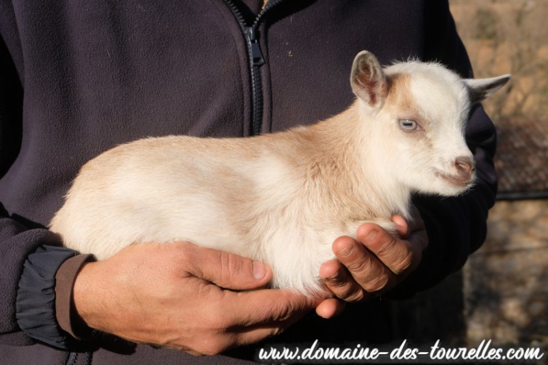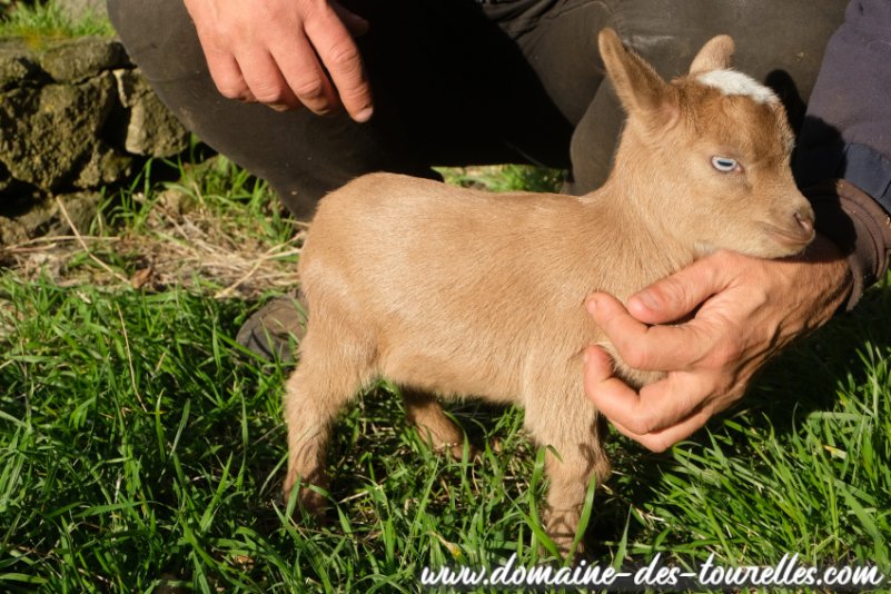 SIA faisait téter son chevreau tout sec lorsque nous l'avons découvert dans la chèvrerie ! Heureusement, la mise bas s'était bien passée malgré la petite taille de la maman. BALOU est lui-même un chevreau de petit gabarit, un futur toy ou extra-nain. Il a hérité de la petite bouille à croquer de son papa et d'une jolie conformation compacte qui le rend particulièrement attractif ! Il a hérité de la robe de base rouge nuancée de son papa. Et son caractère joueur et proche de sa maman le rendent des plus mignon !