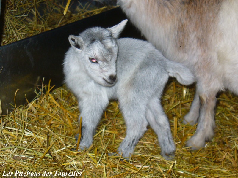 JOYAU.... ooOH ! Tellement d'années j'ai attendu une telle naissance !!!! Un joyau à mes yeux ! Un chevreau miniature, un tout petit bout de chou, d'un bleu intense, très bien conformé et mignon comme tout ! Très difficile et rarissime d'obtenir une telle couleur, sur une si petite taille ! JOYAU est par ailleurs motte* comme sa maman. JOYAU est réservé pour le moment (selon son évolution) en tant que futur reproducteur sur notre élevage.