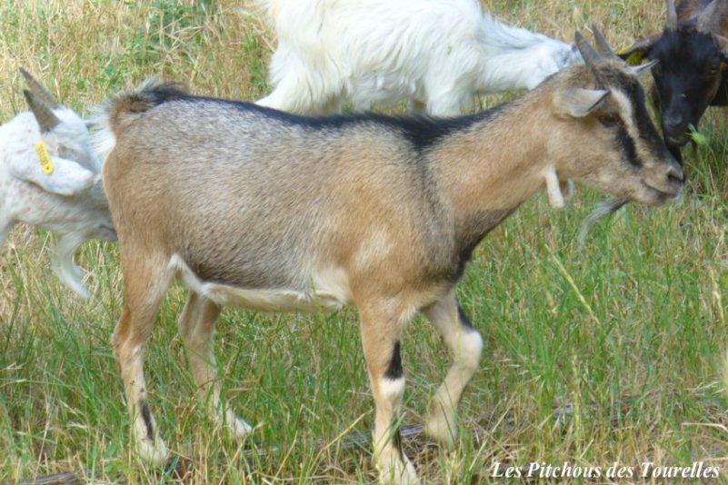 JOANNA est une très jolie et petite chevrette chamoisée aux tons grisés... En réalité, elle est tricolore puisqu'elle a une petite tâche blanche sur le bas de chaque flanc ! Elle a une très belle conformation et la finesse et élégance de sa maman. JOANNA a été vendue à Max (Tarn - 81)