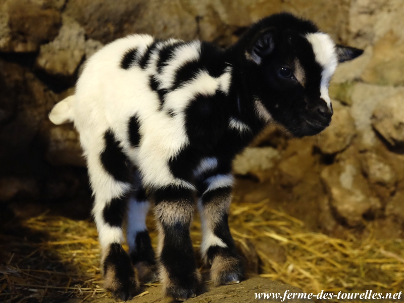FIESTA a donné naissance à ma grande surprise à 2 beaux chevreaux, ce qui est plutôt rare chez les chèvres toys ! Mais le ventre et les mamelles qu'elle avait juste avant la mise bas expliquent cela ! LOUPIOT et LUTIN sont deux adorables mâles, très jolis, tant au niveau de leur couleur de robe peu courantes surtout pour LUTIN bleu & blanc mais aussi avec la belles répartition de tâche sur la visage et les flancs de LOUPIOT, qu'au niveau de leur bouille à croquer ! LOUPIOT malgré son poids est le plus petit car plus épais que son frère LUTIN. LOUPIOT est vendu à Alain (Meurthe-et-Moselle - 54) / LUTIN est parti chez Catherine (Haute-Vienne - 87).