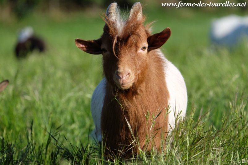 LAETITIA a donné naissance à 2 petits chevreaux tricolores. OLAYA de gabarit toy est toute mignonne et très gentille, naturellement familière. Sa robe porte de jolis contrastes et elle devrait être à poils longs. Quant à O'TAQUET, c'est un coup de coeur car je le trouve splendide, tant par sa robe que par son raffinement. Il devrait lui aussi avoir des poils longs mais il a hérité des traits de comportement d'ELVIS (son grand-père maternel) qui est vif et assez peureux envers les inconnus... il faut gagner son coeur et sa confiance ! OLAYA n'est plus disponible / O'TAQUET est parti chez Blandine (Hérault - 34)