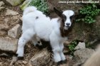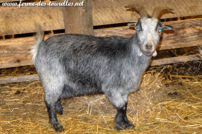 OKAYLA est une petite surprise et une petite rareté de part son petit gabarit en rapport avec la taille naine de ses parents, mais aussi de part ses jolis yeux bleus* ! OKAYLA est une chevrette assez discrète, encore un peu peureuse à mon égard... on va travailler cela au fil du temps pour qu'elle apprenne à ne pas avoir peur d'un grand gabarit tel que nous. Je complète un tout petit peu OKAYLA au biberon, ce qu'elle veut bien accepter de moi, car sa maman n'est pas une excellente laitière et je crains que même avec un chevreau, elle puisse éventuellement avoir un petit manque de lait sans que je ne m'en rende compte... OKAYLA a par ailleurs un marquage en tête rigolo en forme de virgule inversée ! OKAYLA n'est plus disponible