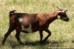 LALOU est une chèvre adorable et très familière. C'est une chèvre plutôt calme, tranquille ce qui en fait une chèvre sage, "sans histoire". Sa couleur pie rouge orangé est rare, et j'espère qu'elle pourra la transmettre à sa future descendance. Sa première gestation s'est malheureusement mal passée car elle a avorté suite à un coup d'une autre chèvre qui lui a causé un énorme hématome sur un des flancs. Elle en a longtemps été choqué et avait peur des autres chèvres pendant des semaines, craignant de se refaire taper de ma sorte. Maintenant, tout va mieux, et LALOU a reprit un peu plus confiance en elle et nous espérons que cela n'aura pas entamé sa capacité reproductive... |