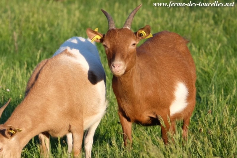 Voici nos chèvres reproductrices (parents ou futurs parents de nos chevreaux) de couleur pie rouge. C'est-à-dire une robe de base rouge avec une panachure blanche par dessus.